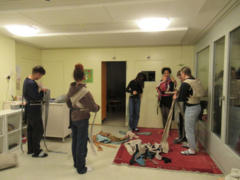 Wir haben uns mit dem Thema "Tragen" beschäftigt. Nach einem theoretischen Einstieg konnten die Lernenden verschiedene Tragemodelle anschauen und ausprobieren.